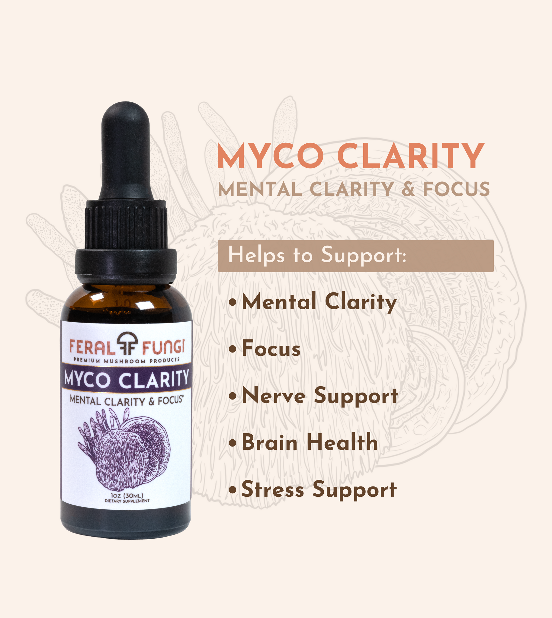 Our Myco-Clarity blend is designed to support mental clarity and focus with a blend of Lion's Mane, Reishi, and Cordyceps mushrooms.